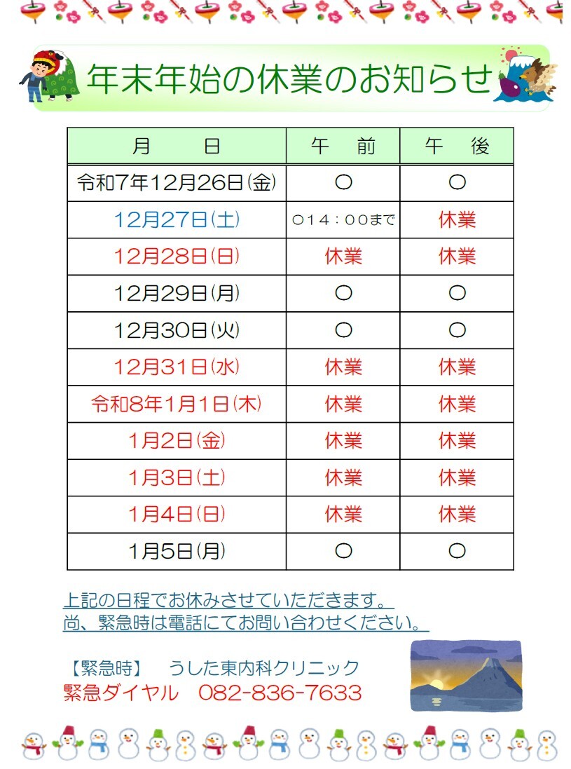 2025/11/28 年末年始のお休みについて